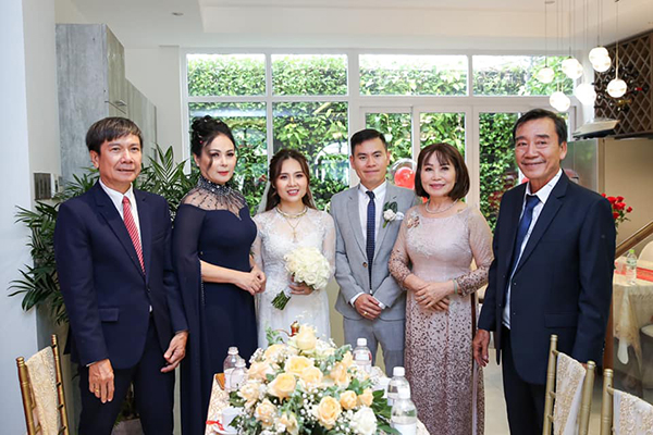 Vợ chồng Ôn Bích Hằng chụp hình cùng thông gia